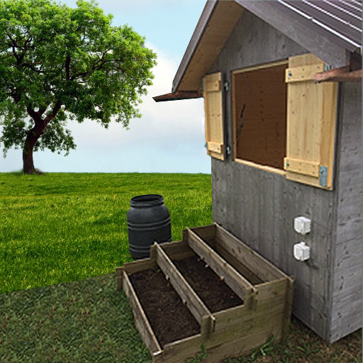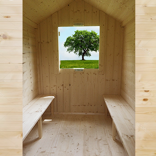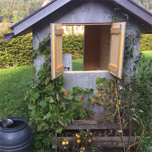 • Holzhaus mit Tür und Fenster, verschliessbar
